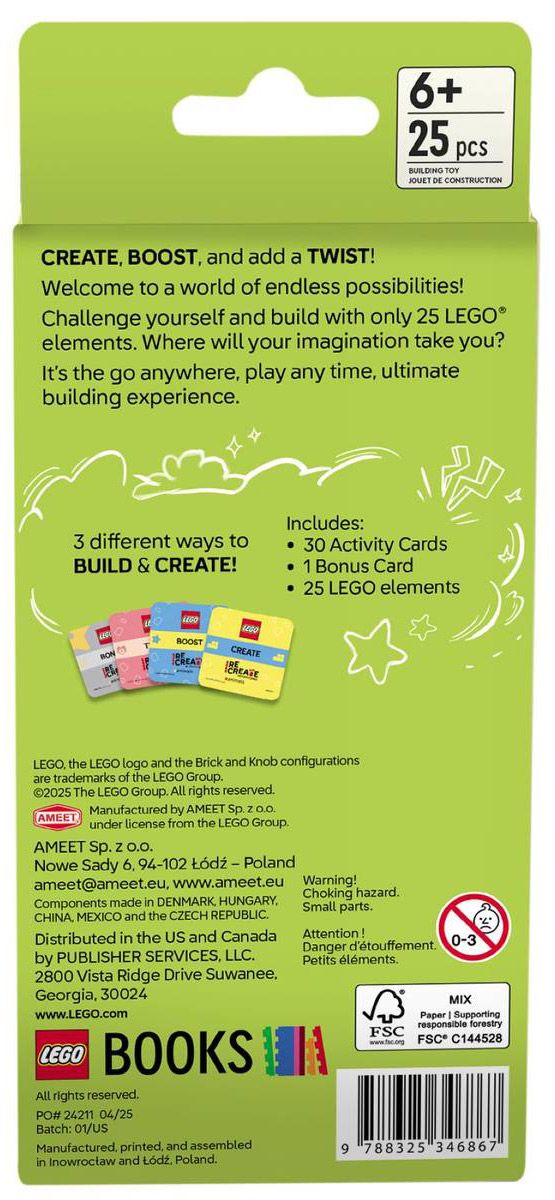 Ce lot de cartes d’activités récréatives LEGO compact contient plus de 30 cartes et 25 pièces LEGO. Chaque carte propose un défi de construction amusant pour les enfants à partir de 6 ans. 3 modes différents permettent d’apprécier ce jeu créatif en solo, en famille ou avec des amis.