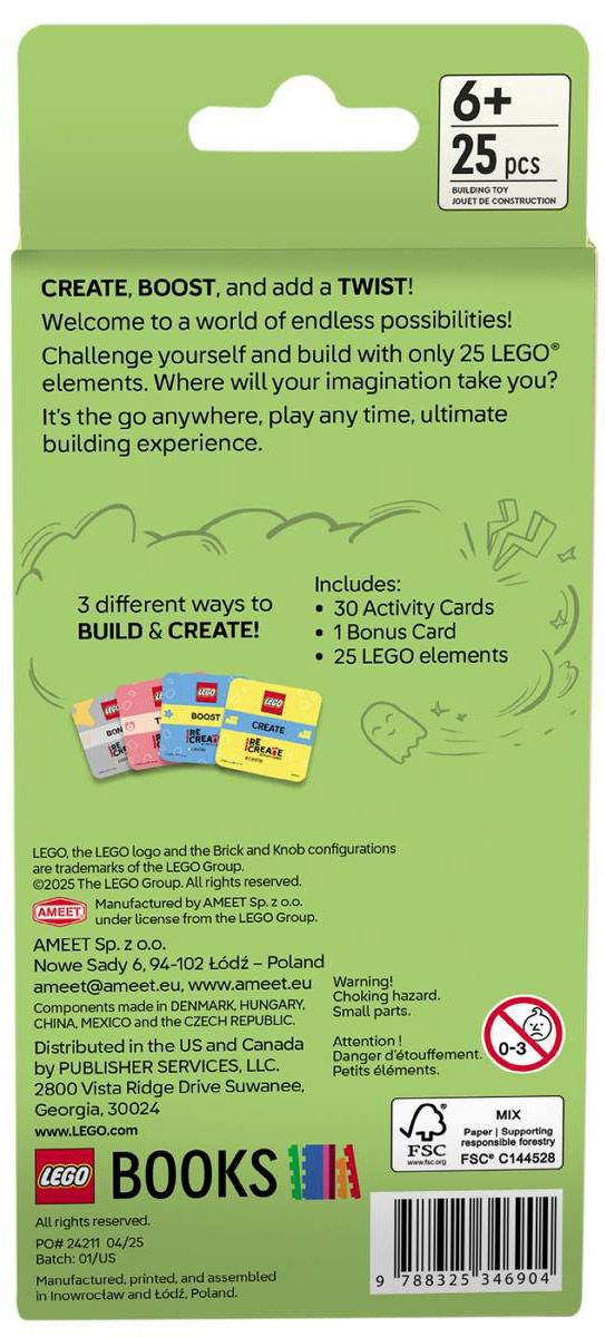 Ce lot de cartes d’activités récréatives LEGO compact contient plus de 30 cartes et 25 pièces LEGO. Chaque carte propose un défi de construction amusant pour les enfants à partir de 6 ans. 3 modes différents permettent d’apprécier ce jeu créatif en solo, en famille ou avec des amis.