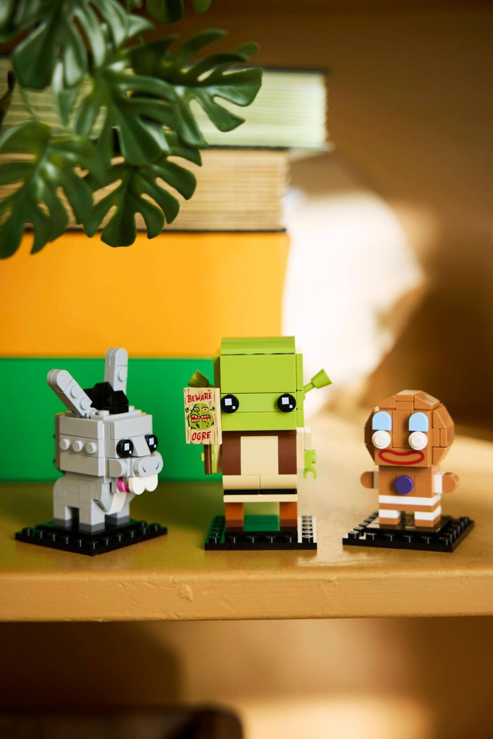 - PERSONNAGES EMBLÉMATIQUES DES FILMS – Les fans peuvent construire Shrek, l’Âne et Ti Biscuit et découvrir leurs détails ; les 3 figurines ont des éléments imprimés et Shrek tient un panneau « Beware Ogre »