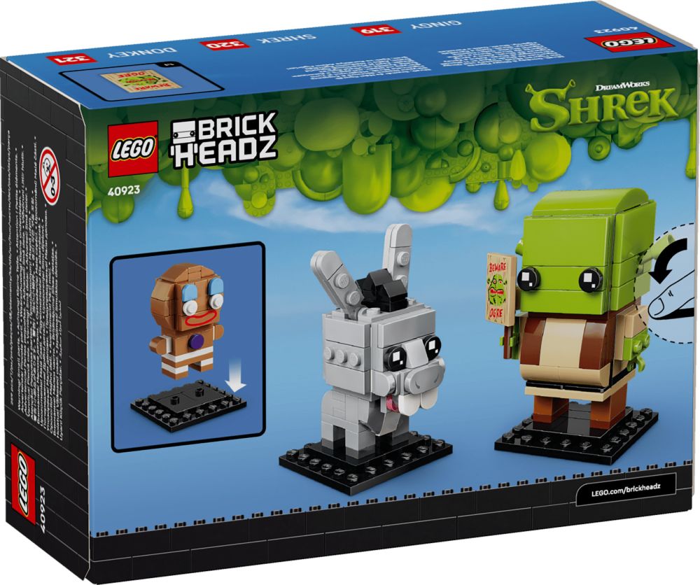 - JOUETS SHREK – Faites entrer les enfants de 10 ans et plus dans l’univers de leur ogre préféré avec le set de construction Figurines de Shrek, l’Âne et Ti Biscuit LEGO BrickHeadz (40923)