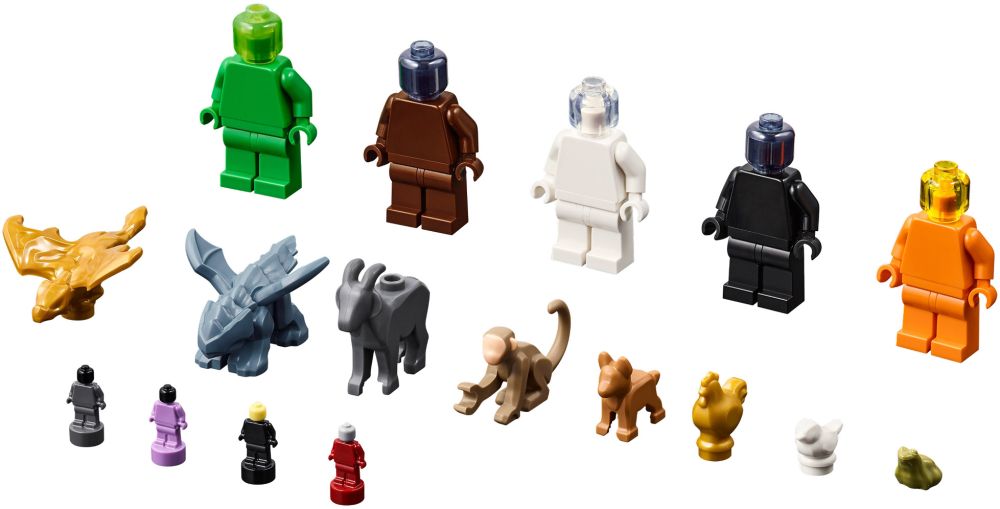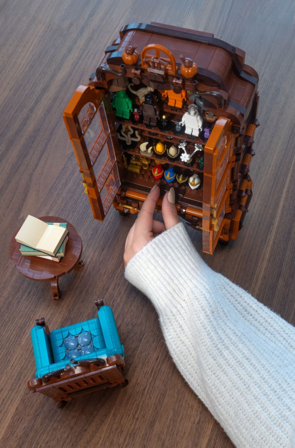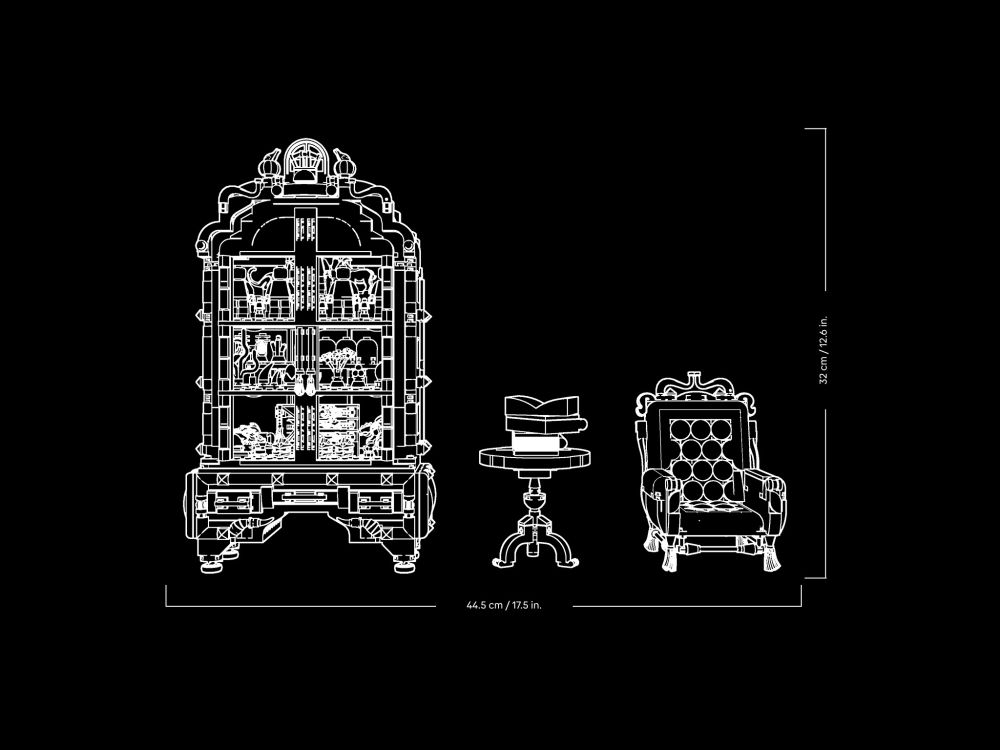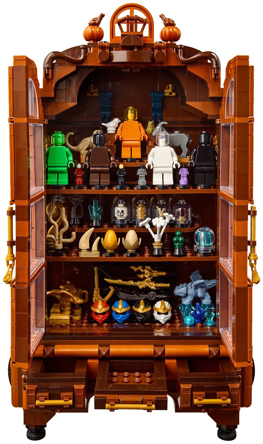 Les trophées des figurines sont disponibles dans une variante de couleur spéciale exclusive à cet ensemble. L'étagère du milieu a pour thème la nature et est décorée de fossiles et de minéraux. L'étagère du bas a été mise à jour avec la collection de pièces Ninjago. Des masques, des armes, des dragons et des bijoux sont exposés comme dans un musée.