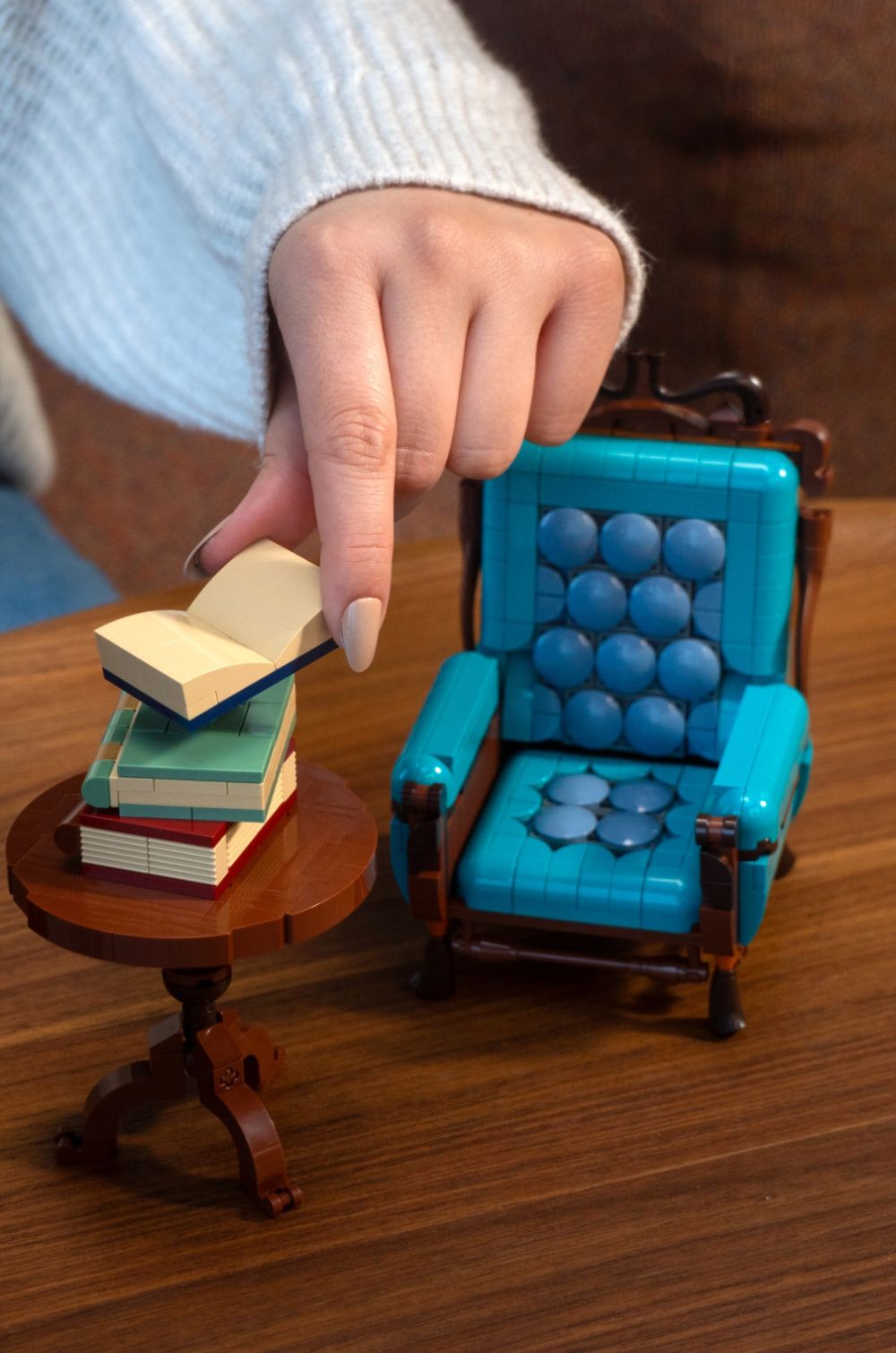 Plus bas, trois tiroirs permettent de ranger de petits objets. La chaise victorienne antique présente des décorations élégantes et incurvées, et le coussin est orné d'une plaque ronde inversée avec une texture en forme de bouton. Une table d'appoint sur laquelle sont empilés des livres vous donne également un aperçu de la vie d'un collectionneur d'antiquités.