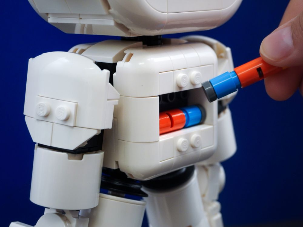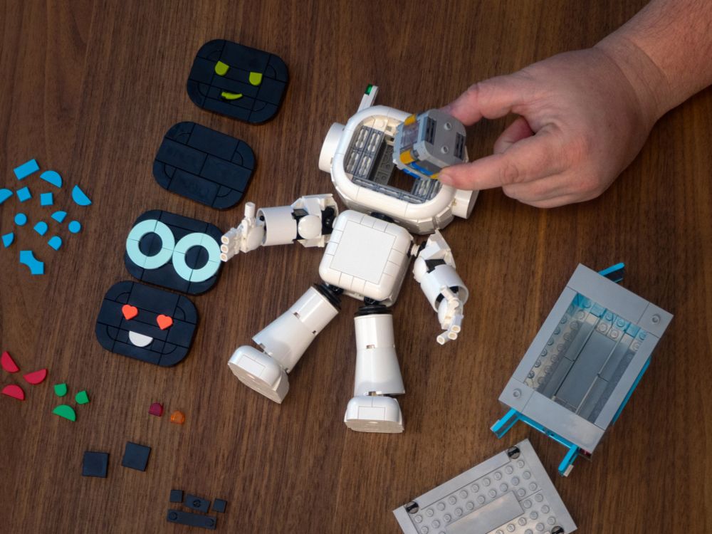 De plus, le modèle est livré avec quatre plaques faciales personnalisables, ainsi qu'un large éventail de tuiles de différentes couleurs pour créer vos propres expressions faciales. Les possibilités sont presque infinies ! Pour changer de visage, appuyez sur une tuile à l'arrière de sa tête, ce qui révélera également le cerveau électronique de W.A.L.T.