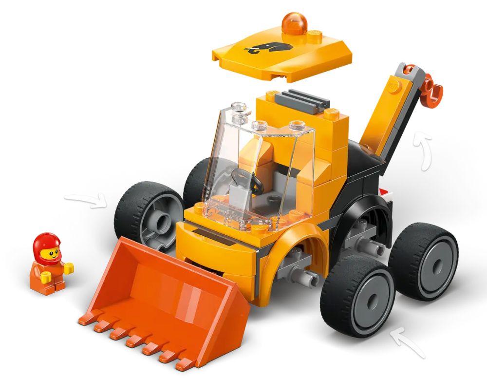 - MINIFIGURINE JUNIOR D’OUVRIER – Les enfants peuvent placer la minifigurine junior dans la cabine et se lancer dans de grandes aventures