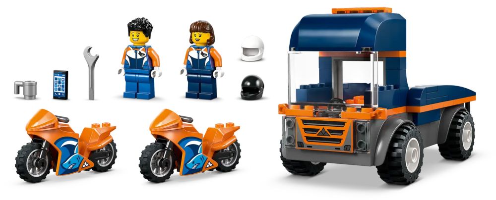 - QUE CONTIENT LA BOÎTE ? – Inclut tout ce dont les enfants ont besoin pour construire un camion à plateau, 2 motos et 2 minifigurines de pilotes, stimulant la narration et inspirant une infinité de jeux d’imagination