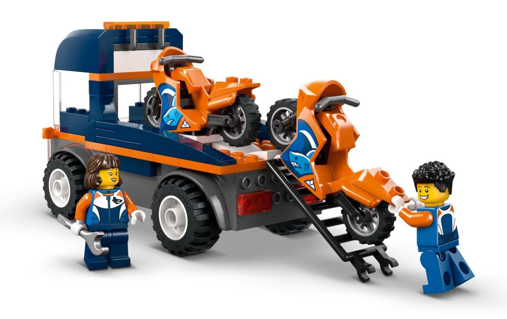 - JOUETS POUR ENFANTS FAVORISANT LE JEU DE RÔLE – Les enfants peuvent installer une minifigurine dans la cabine du camion à plateau et fixer la rampe pour charger et décharger les 2 motos