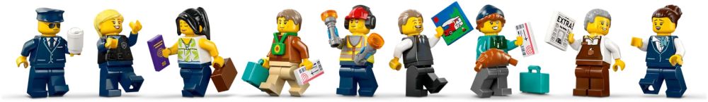 - ACCESSOIRES POUR MINIFIGURINES – Ce set inclut des accessoires LEGO sur le thème de l’aéroport, dont 3 valises, 2 billets d'embarquement, des bâtons de guidage, un cordon Tournesol, un passeport, un journal, une carte et un croissant