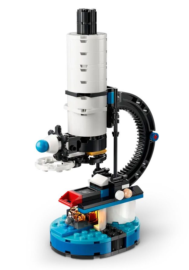 Les garçons et les filles dès 8 ans entretiennent leur passion pour la science et l’espace avec Le télescope d’exploration spatiale LEGO Creator 3-en-1 (31378). Ce jouet STEM détaillé offre 3 options de construction avec les mêmes briques. Les enfants peuvent construire un télescope réglable sur trépied et un système solaire représentant le Soleil et 7 planètes en orbite, puis les transformer en microscope réglable ou en OVNI doté d’antennes et de pieds mobiles à déployer. Chaque jouet inspiré de l’espace inclut une brique lumineuse (piles incluses) que les enfants peuvent allumer en appuyant sur un bouton pour projeter des images depuis le télescope, éclairer des images avec le microscope ou projeter une lumière sous l’OVNI. Le set inclut 3 lentilles interchangeables ornées d’images d’une planète, d’une étoile et de la Lune, à projeter avec le télescope ou à observer avec le microscope. Les modèles ne peuvent pas être construits simultanément. Contient 278 pièces.