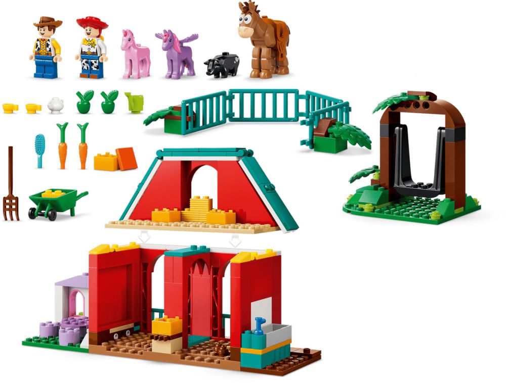 - DES FONCTIONS À DÉCOUVRIR – L'enclos des chevaux à placer à côté ou devant l’écurie, les portes de l’écurie qui s'ouvrent, la balançoire sur laquelle Jessie ou Woody peuvent s’asseoir et la capsule temporelle cachée inspirent jeu créatif