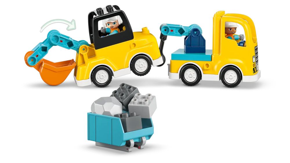 - 1 SET, 6 VÉHICULES – Les briques de ce set LEGO DUPLO pour tout-petits s'assemblent pour créer 2 dépanneuses avec différents crochets, une tractopelle, une nacelle élévatrice, un camion-benne ou une pelleteuse avec un bras articulé