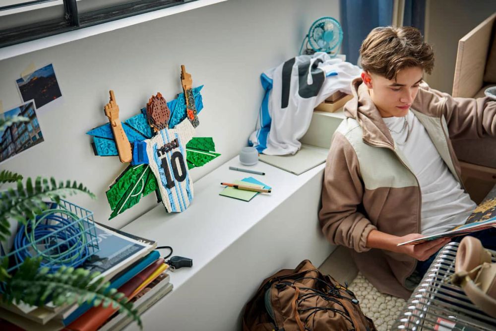 Enrichissez votre collection sur le thème du foot avec le set de construction Lionel Messi – La célébration LEGO Editions (43018) pour garçons et filles dès 14 ans. Les adolescents rendent hommage à leur joueur favori en créant un tableau en 3D représentant Lionel Messi dans sa pose de la victoire, les doigts pointant le ciel. Ce modèle à exposer met en vedette son célèbre maillot rayé « Numéro 10 » qui se détache sur un fond texturé formé par le ciel et le terrain. Les fans vont adorer les nombreux clins d’œil à la vie et à la carrière de Lionel Messi. Au coup de sifflet final, impressionnez toute votre équipe en utilisant le crochet inclus pour suspendre fièrement ce tableau et décorer une chambre ou un bureau. Ce kit de construction constitue une idée de cadeau d’anniversaire ou de fêtes fascinant pour adolescents et fans de foot. L’appli LEGO Builder propose des instructions numériques et des outils pour suivre sa progression et faire pivoter ses créations. Contient 1 427 pièces.