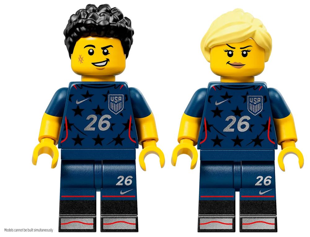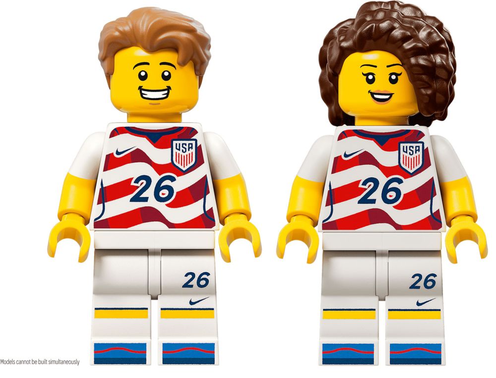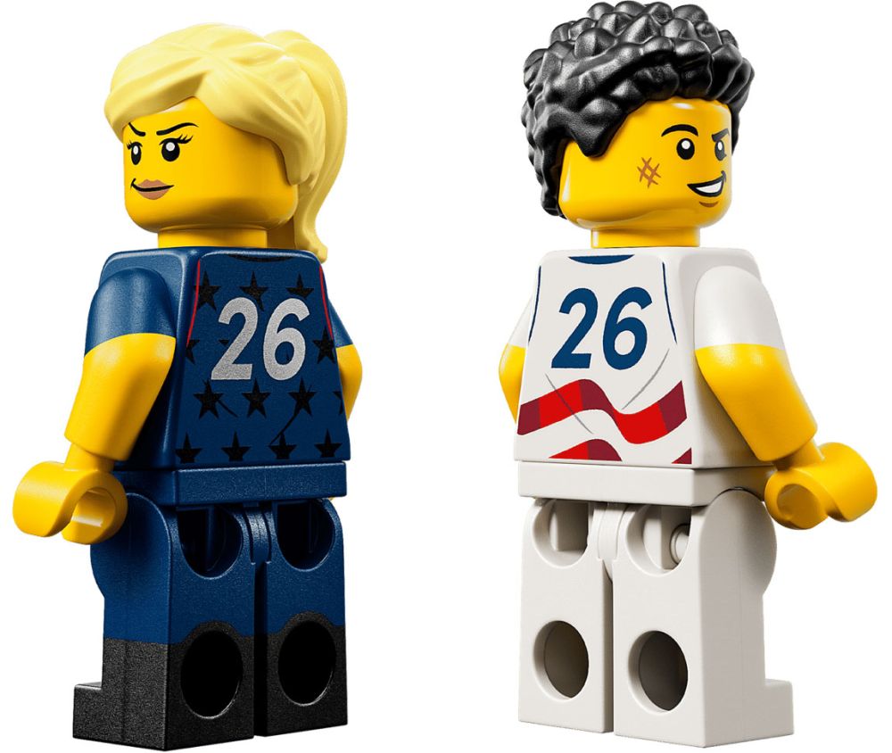 - 2 MINIFIGURINES LEGO – Le kitinclut 2 minifigurines de foot : l’une porte les rayures de l’équipe et l’autre les étoiles, et des options pour la tête et les cheveux permettent de les personnaliser