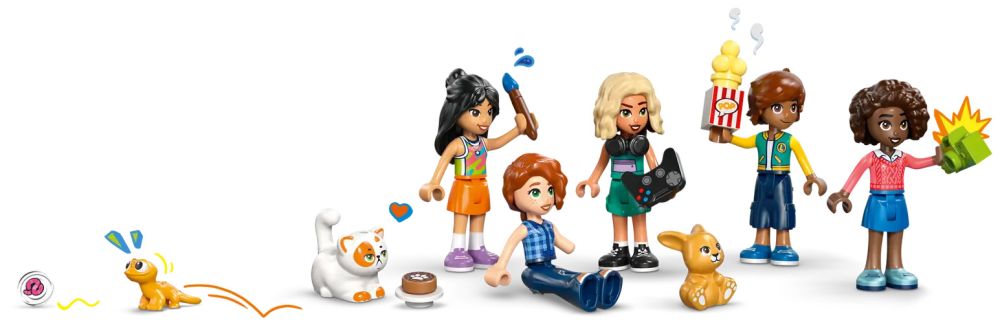 - 5 PERSONNAGES LEGO FRIENDS – Ce jouet de simulation pour enfants inclut 5 mini-poupées : Autumn, Nova, Aliya, Léo et Liann, ainsi que leurs animaux de compagnie Churro le chat, Honey le lapin et Popcorn le gecko