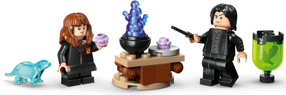 - SALLE DE CLASSE CACHÉE – Déplacez la spatule pour révéler la salle de classe avec des tables amovibles pour jouer facilement, un tableau, des flacons et des ingrédients LEGO pour fabriquer un Philtre d’amour et les potions Tue-loup et Polynectar