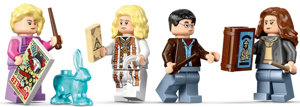 - 5 MINIFIGURINES LEGO HARRY POTTER – Luna Lovegood, Xenophilius Lovegood, Harry Potter, Hermione Granger et un Mangemort, chacun muni d’une baguette, ainsi qu’un Patronus™ lièvre à collectionner pour le 25e anniversaire