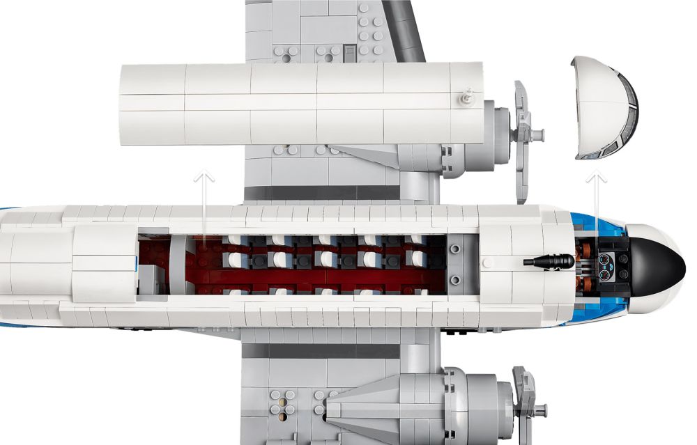 - DIMENSIONS – La maquette d’avion, présentoir inclus, de ce set LEGO Icons de 1 903 pièces mesure plus de 24 cm de haut, 51 cm de long et 76 cm de large
