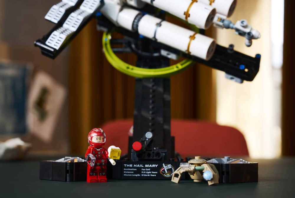 - QUE CONTIENT LA BOÎTE ? – Tout cedont vous avez besoin pour construire une réplique miniature du vaisseau spatial du Projet Dernière Chance, un présentoir fonctionnel, ainsi qu’une minifigurine de Ryland Grace et une figurine de Rocky