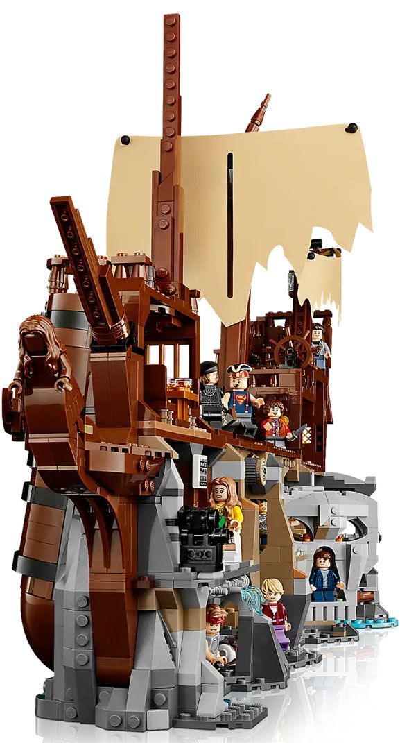 Ce set inclut 12 minifigurines LEGO des principaux personnages du film et regorge de détails authentiques. Envoyez une minifigurine dans les grottes par une entrée secrète dans la cheminée. Activez le piège qui lâche des rochers. Utilisez la clé squelette pour ouvrir la trappe. Actionnez les touches de l’orgue squelette pour ouvrir le sol et accéder au toboggan qui mène à la pieuvre (inspiré d’une scène coupée), ou faites glisser Sinok sur le mât de l’Inferno.
