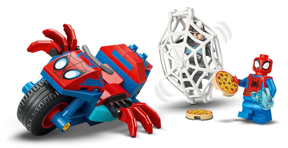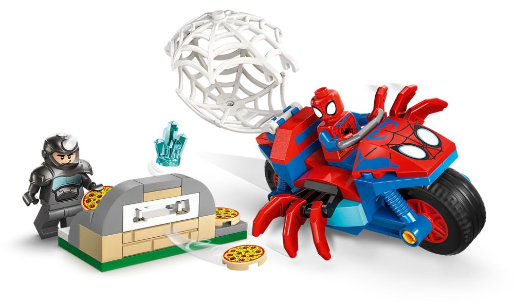 - L’ACTION MARVEL SUR ROUES – Les enfants aident Spidey à récupérer une gemme bleue volée, à esquiver les pizzas volantes lancées par le four lanceur de pizzas de Rhino et à capturer Rhino dans une toile d'araignée géante