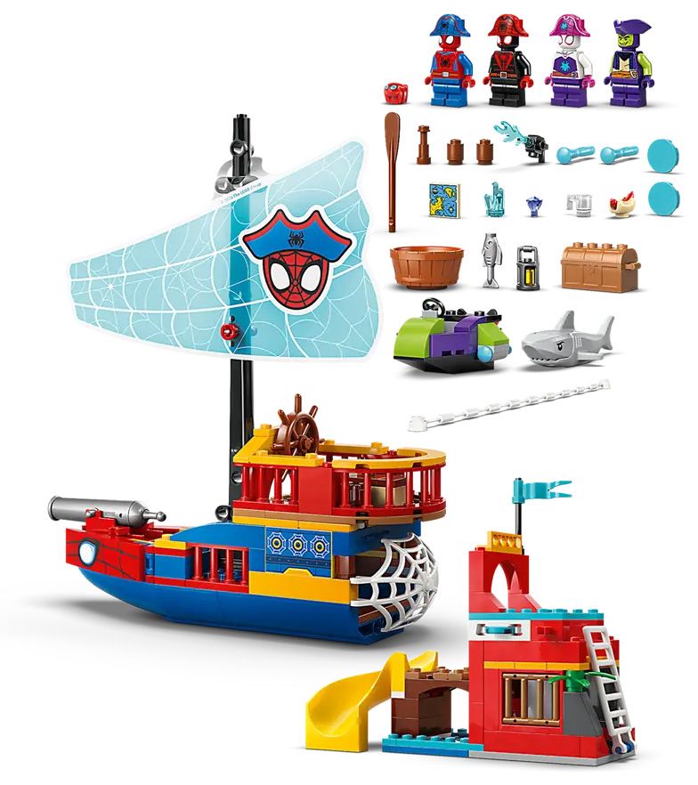 - 4 MINIFIGURINES – Rejoignez Spidey, Ghost-Spider, Miles « Spin » Morales, le Bouffon Vert et Trace-E et vivez des aventures palpitantes sur un bateau pirate, Spidey Island et 2 autres petits bateaux avec ce jeu de construction plein d'action