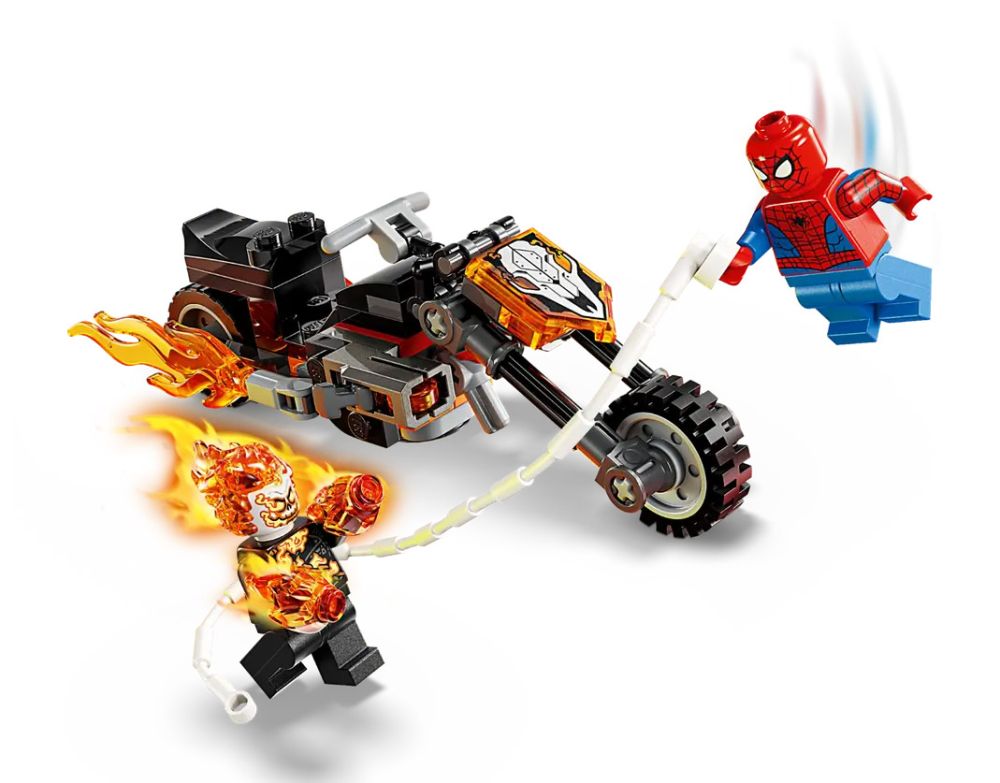- 2 MINIFIGURINES LEGO MARVEL – Spider-Man, le lanceur de toiles, et Ghost Rider, le squelette aux cheveux enflammés, stimulent le jeu et l’imagination des enfants