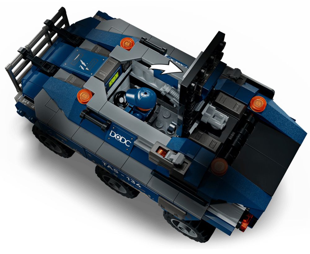 - ACTION RÉALISTE – Ce véhicule à 6 roues inclut 2 fusils à tenons, une trappe de toit pour accéder au cockpit, une ouverture à l’arrière pour accéder à la prison, ainsi qu’une suspension pour terrains accidentés