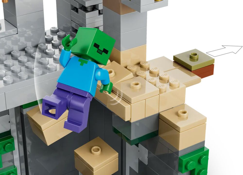 - JEU DE RÔLE INFINI – Ce set représentant le biome du désert de Minecraft propose des fonctions qui stimulent le jeu d’imagination, telles qu’une salle rotative où naissent des zombies et un élément coulissant qui déclenche une chute de roche