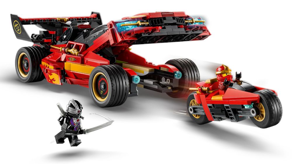 - VÉHICULE 2-EN-1 – Soulevez le capot de cette version améliorée du chargeur Ninja X-1 original (70727) pour libérer une moto aux roues mobiles cachée à l’intérieur