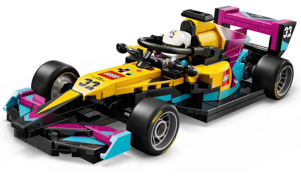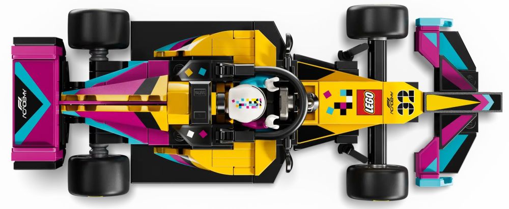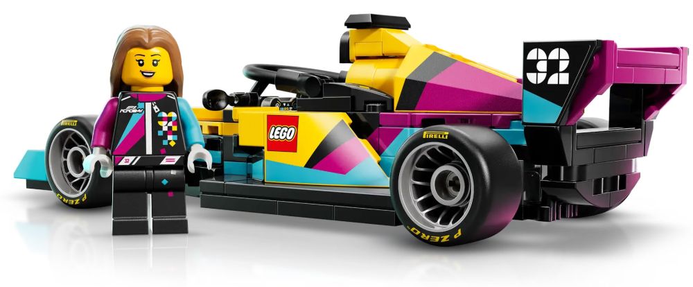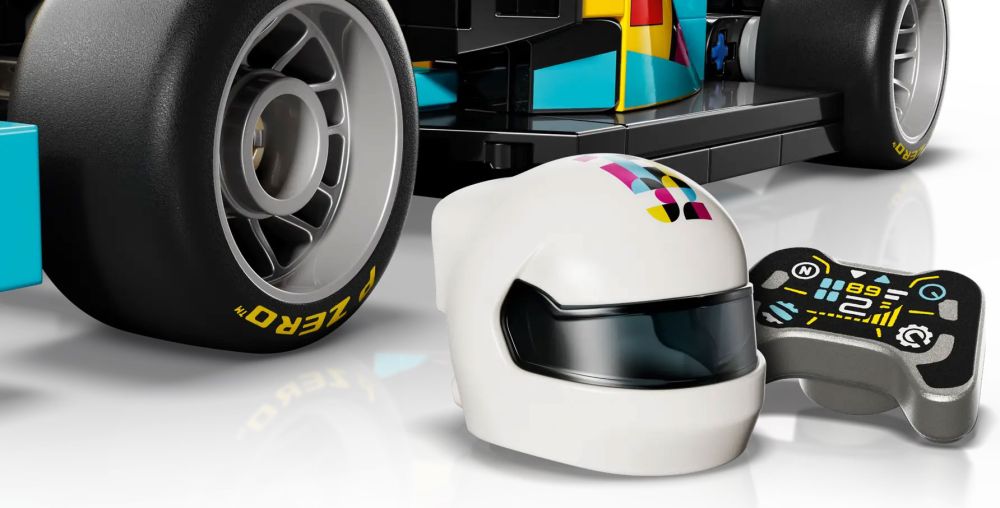 Cette voiture de course F1 ACADEMY comporte un cockpit, un aileron arrière et des pneus marqués « Pirelli ». Elle s’accompagne d’une minifigurine de femme pilote de F1 ACADEMY, avec un casque, des cheveux et une clé à molette, à placer dans le cockpit pour des courses palpitantes.