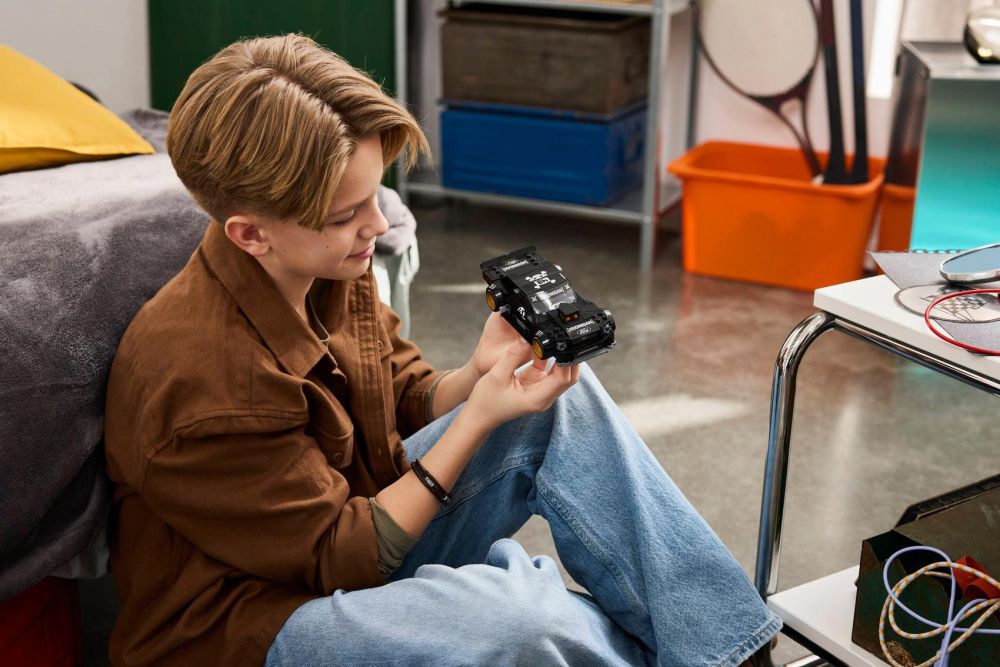 - 1 MINIFIGURINE DE KEN BLOCK – Ce kit de construction inclut une minifigurine de Ken Block portant un chapeau et une veste Hoonicorn, ainsi qu’un casque, à placer au volant pour vivre l’action à grande vitesse