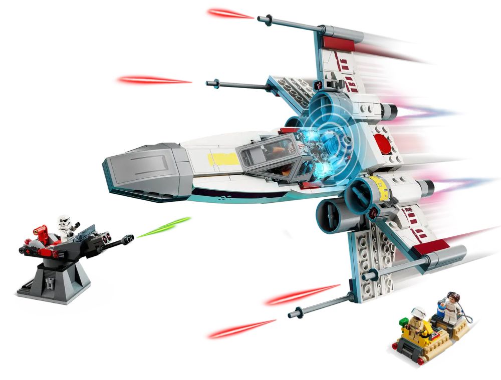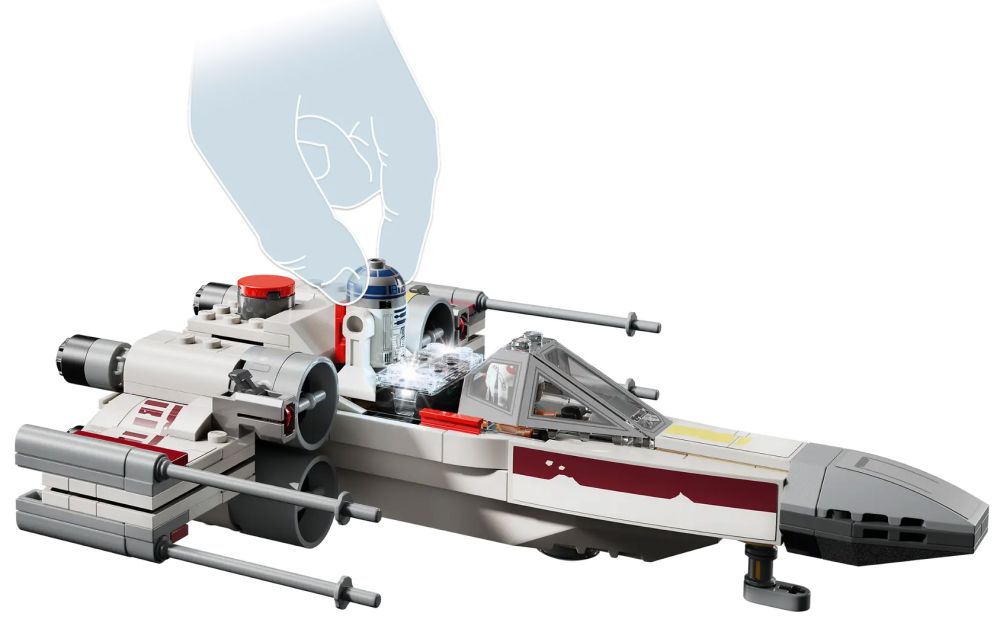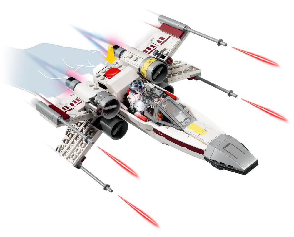 - DONNEZ VIE AU X-WING – Placez la SMART Brique sur le X-Wing pour produire des lumières et des sons activés par le mouvement : bruits de moteur, de tir laser, de ravitaillement et de réparation