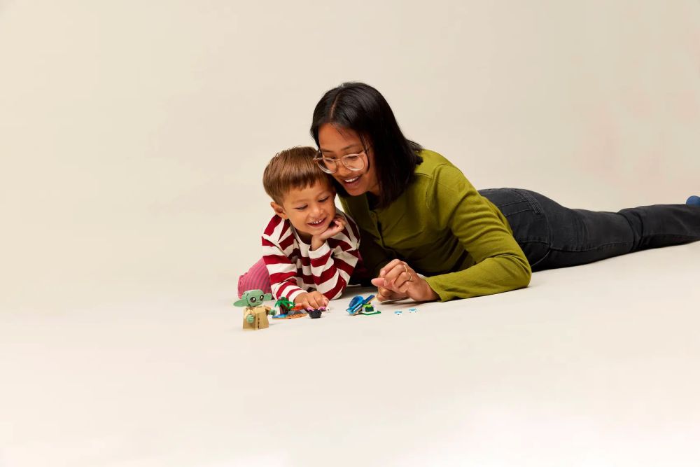 Offrez aux enfants de 4 ans et plus une première expérience de construction et de jeu inspirante dans l'univers LEGO Star Wars avec le set Chez Grogu (75443). Petit cadeau idéal pour les jeunes enfants et les fans de Star Wars, il inclut une figurine articulée de Grogu, facile à construire, une grenouille de Sorgan, 2 constructions miniatures et des accessoires. Propulsez la grenouille de Sorgan avec la catapulte. Recréez des scènes de Star Wars : The Mandalorian autour du feu avec une marmite, 2 tentacules, une guimauve sur un bâton et 2 macarons bleus, dont l’un peut tenir dans le ventre de Grogu. Les instructions simples et illustrées de ce set sont parfaites pour les enfants qui ne savent pas encore lire. Pour une expérience encore plus ludique, l'application LEGO Builder propose des outils numériques de zoom et de rotation qui permettent aux enfants de visualiser les modèles au fur et à mesure de la construction (peut-être avec l'aide d'un « plus grand »). Contient 107 pièces.