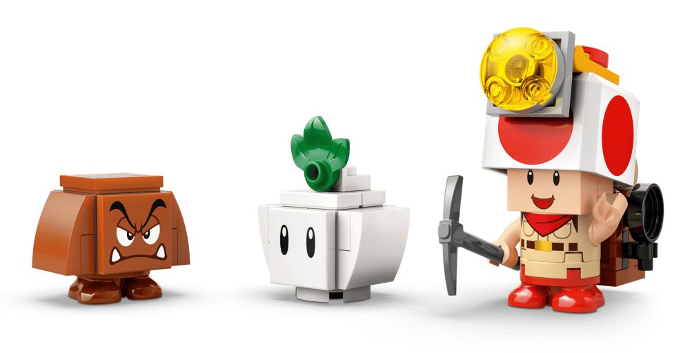 - 3 figurines LEGO Super Mario inspirant des jeux de rôles amusants – Ce set LEGO Nintendo inclut le capitaine Toad, un navet et un Goomba, ainsi qu’un sac à dos à construire, une pioche, une poêle et des diamants