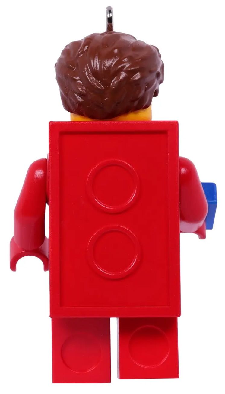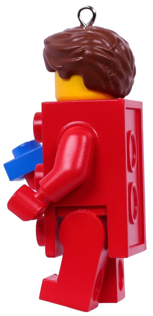 - DÉCORATION DE NOËL LEGO – La décoration souvenir Garçon déguisé en brique LEGO présente un corps en forme de brique LEGO 2x3 rouge et un cadeau en forme de brique bleue dans une main