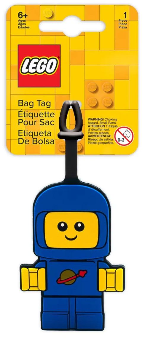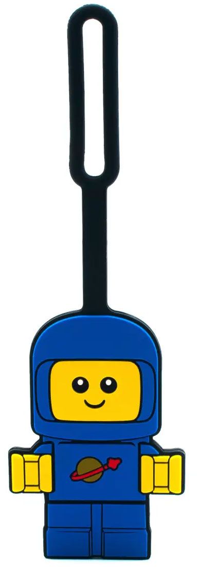 - Accessoire de voyage LEGO – Une étiquette de sac 100 % silicone portant l’illustration d’une minifigurine LEGO de bébé de l’espace sur le devant, et présentant un espace pour écrire ses coordonnées au dos