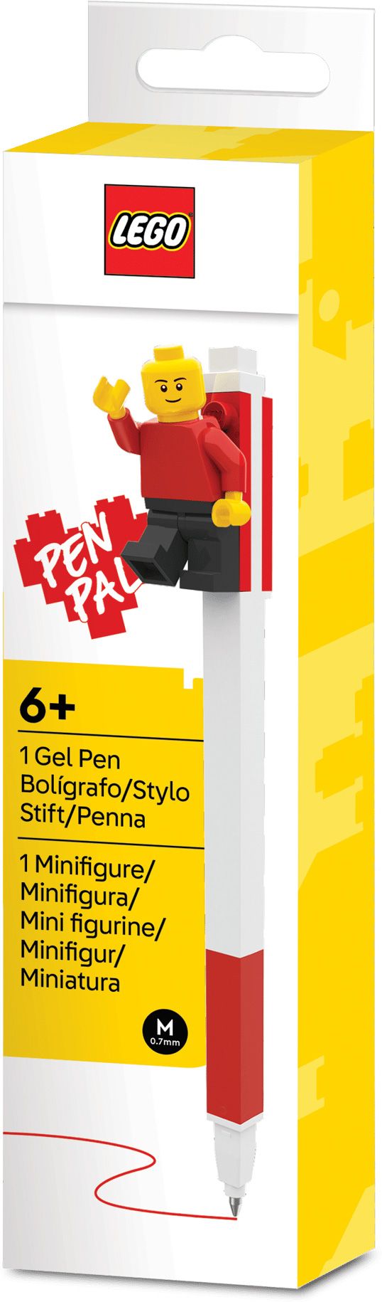 Cet amusant stylo à encre gel LEGO Pen Pal avec minifigurine est doté d’une pointe moyenne. Son encre gel rouge offre une expérience d’écriture agréable, tout en douceur. La minifigurine portant un t-shirt rouge et un pantalon noir peut être fixée sur le stylo grâce à la brique LEGO intégrée, ou retirée pour être posée séparément pendant que l’enfant écrit ou dessine. Ce stylo est un beau cadeau pour les enfants et tous les fans de LEGO à partir de 6 ans.