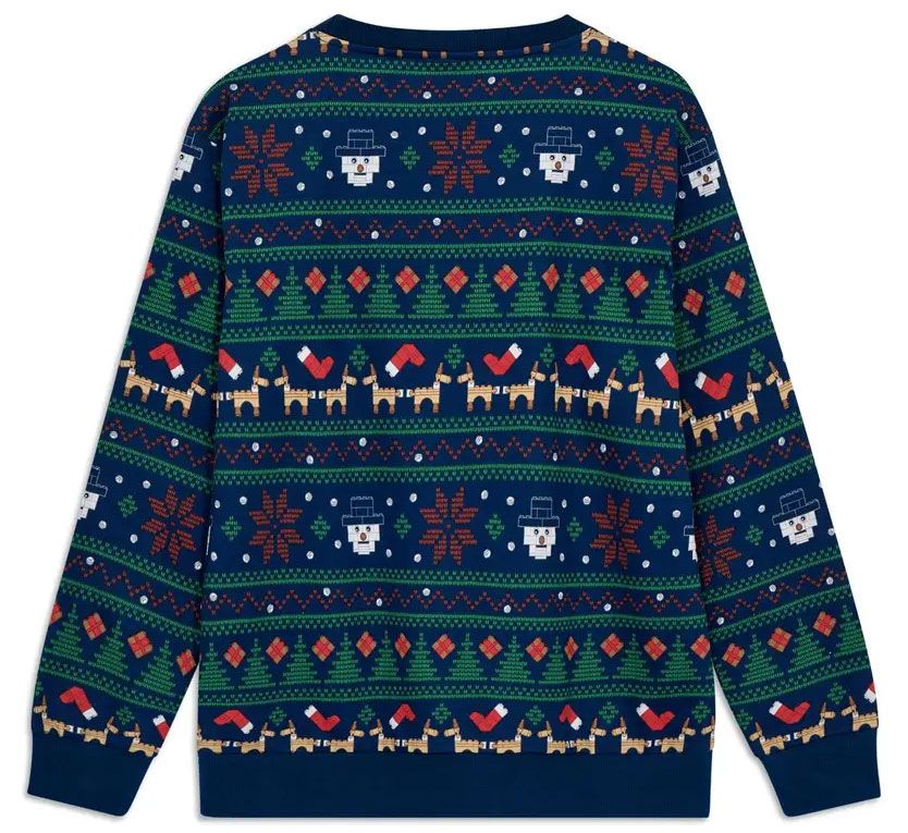 - SWEAT-SHIRT DE NOËL LEGO – Célébrez les fêtes de fin d'année avec ce sweat-shirt de Noël pour adultes – Bleu foncé, orné de symboles traditionnels dont des sapins, des couronnes, des rennes et des chaussettes de Noël