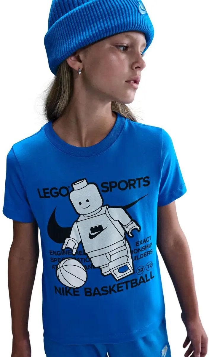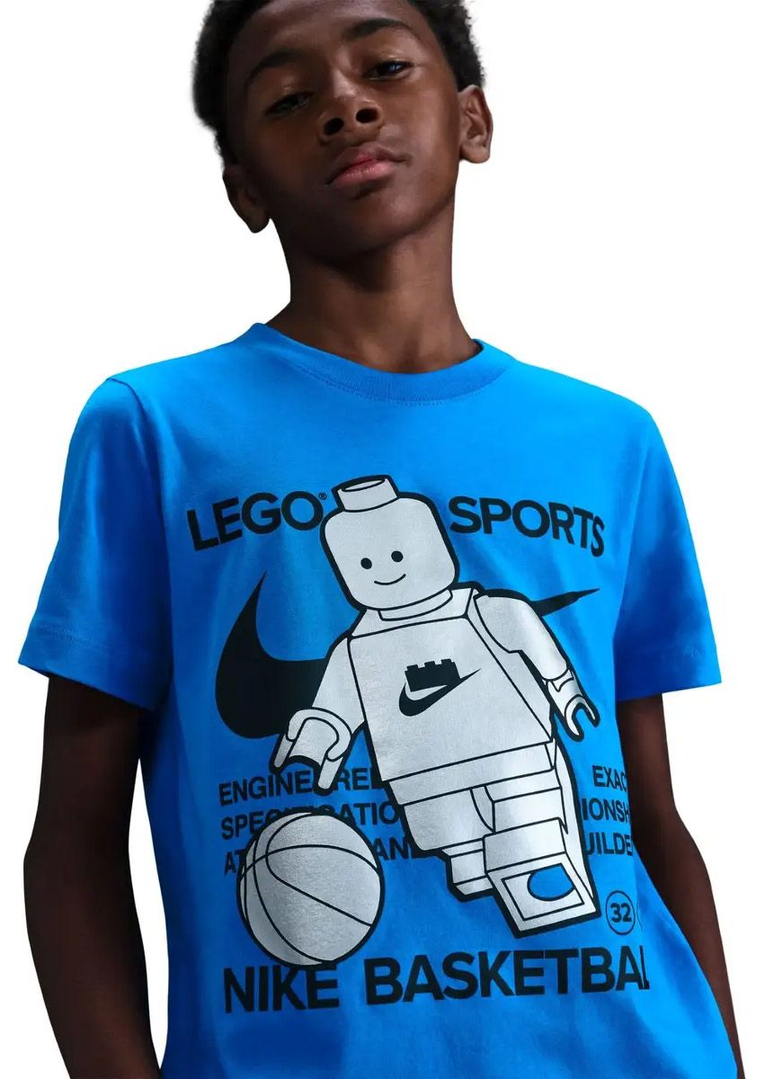 - MOTIF SPORTIF – Ce T-shirt, adoptant le bleu signature de LEGO, s’orne d’un motif représentant une minifigurine Nike x LEGO dribblant avec un ballon de basket