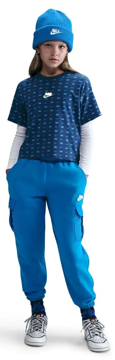 Voici LA pièce qui permettra aux jeunes constructeurs LEGO de se démarquer avec style. Ce T-shirt court de la collection Nike x LEGO à la coupe ample est leur allié idéal. Ce T-shirt bleu en coton léger et doux s’orne d’un motif imprimé en continu alternant brique LEGO et logo Nike, et offre un tomber naturel à la taille. Superbe cadeau pour les jeunes fans de LEGO, ce T-shirt est disponible en différentes tailles et est lavable en machine.