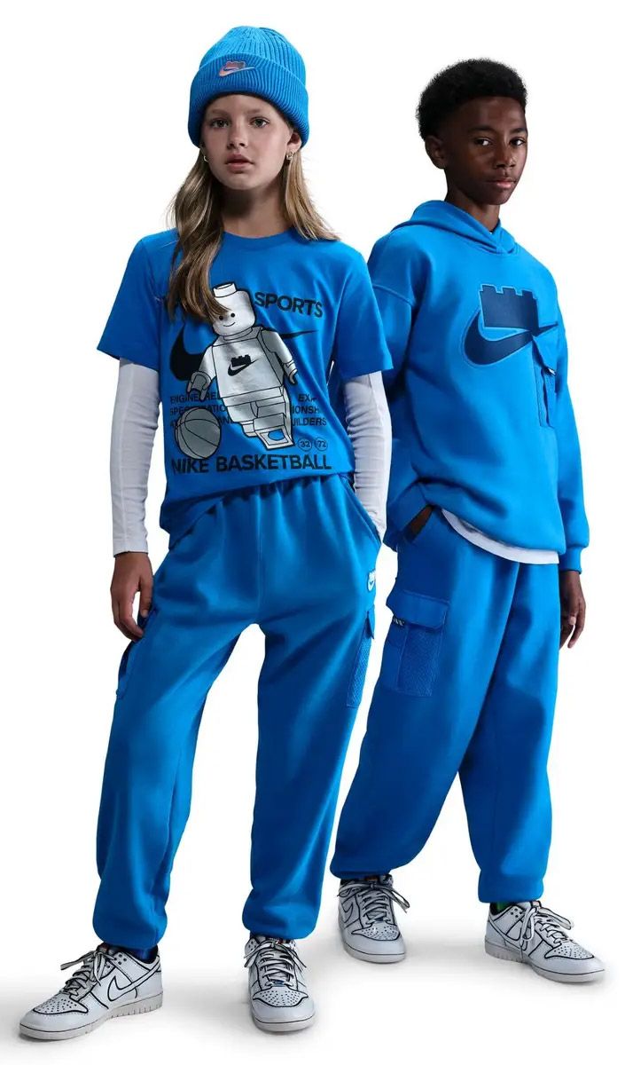 Construire de nouveaux univers nécessite de l'espace, et c’est ce qu’offre ce pantalon à coupe ample. Réalisé en molleton léger et doux, brossé à l'intérieur, ce pantalon cargo de la collection Nike x LEGO offre aux enfants une sensation de confort douillet lorsqu’ils expriment leur créativité en-dehors du terrain. Il est rehaussé de détails de marque pour que les enfants puissent exprimer clairement leur enthousiasme pour cette collaboration, et grâce à ses nombreuses poches ils sont certains de ne jamais laisser leur minifigurine LEGO préférée à la maison. Superbe cadeau pour les garçons et les filles, ce pantalon existe en différentes tailles pour grands enfants.